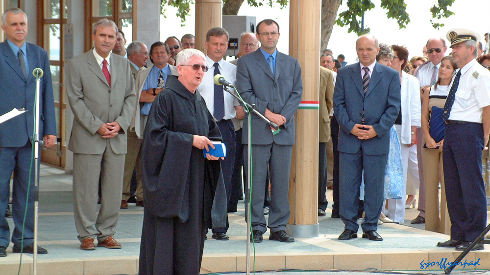 A felújított kikötőt Korzenszky Richárd, a tihanyi apátság perjele áldotta meg a 2003. júniusi avató ünnepségen – Fotó: Győrffy Árpád
