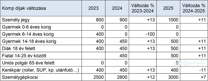 A balatoni kompjáratok egyes díjainak változása 2023-2025 között – Forrás: bahart.hu-győrffyárpád