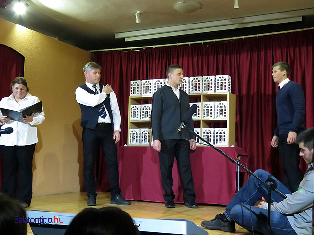 Nem csak a művelődési ház nagyterme telt meg érdeklődőkkel, a folyosókon és a színpadon is alig fért el a több mint negyven közreműködő. A program első részét a Balatonakali Asszonykórus éneke fogta keretbe. A közel egy órás műsorban óvodások, különböző korú iskolások, felnőttek mondtak verseket, adtak elő énekeket, közben mindenki elhelyezte a maga égő mécsesét az adventi naptár ablakaiban. Két összeállítással is szerepelt a Balatonakali Moderntánc Csoport, a felnőtt színjátszók pedig egy kedves karácsonyi történetet adtak elő egy özvegy autószerelőről, aki jóságával megszépíti másoknak az ünnepet, s ezzel kicsit meg is változtatja életüket és saját életét is.