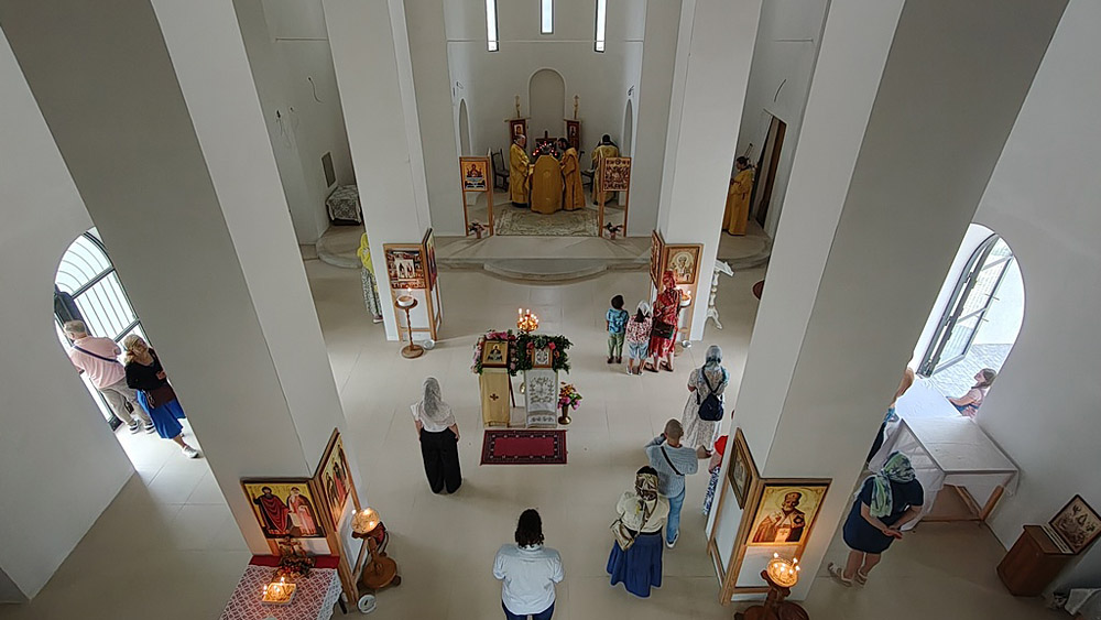 A templom belső része szinte teljesen elkészült, a már elkészült ikonokat is kiállították. A templomban rendszeresen istentiszteleteket és más rendezvényeket tartanak – Fotó: heviz.magyarortodox.com