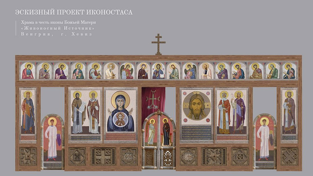 A képeket összefogó ikonfalat egy budapesti asztalosműhelyben készítik el – a képen az ikonfal terve – Forrás: heviz.magyarortodox.com