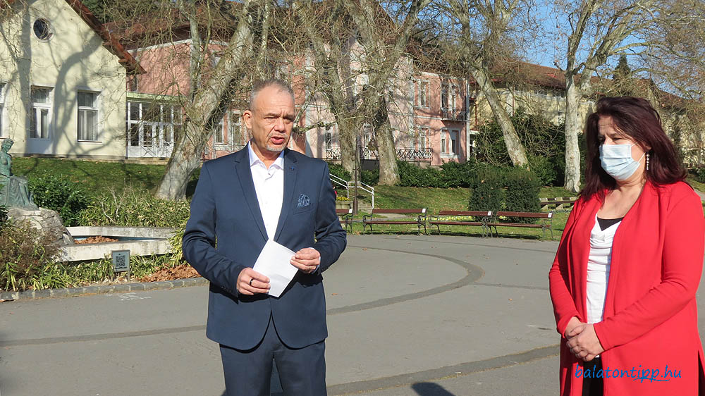 A képen Papp Gábor akkori polgármester dr. Holléné dr. Mándó Zsuzsannával, a Hévízgyógyfürdő és Szent András Reumakórház frissen kinevezett főigazgatójával sajtótájékoztatót tartott a kórházhoz tartozó sétányon induló munkákról, ami közös projektként valósult meg – Fotó: Győrffy Árpád