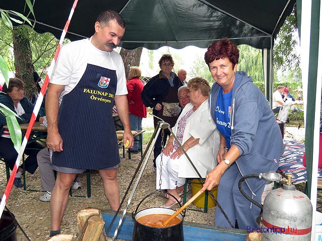 Nebehaj János és Somogyi Kálmáné nyaralójukkal kötődnek a faluhoz, egyébként Komárom megyeiek. A falunap kedvéért vendégeik is jöttek Keszthelyről, Tatáról, Oroszlányból. Az idén már negyedszerre vesznek rész a “versenyen”, most babgulyást főztek, amihez saját csipetkét készítettek. Tizenöt adagra méretezték az ételt, így bőven lesz kínálni való is. Azt mondják, a korábbi években mindig elfogyott az étel az utolsó csöppig. Abban bíznak az idén is sikeres lesz.
