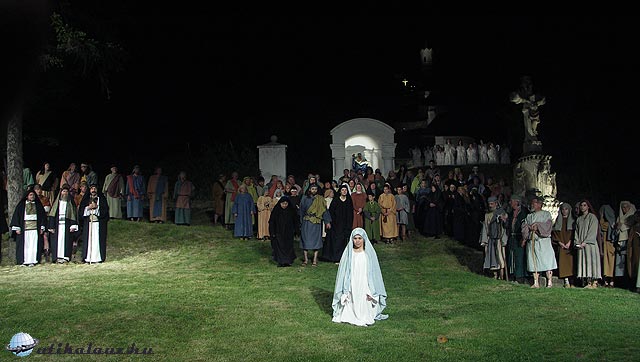 A mintegy 150 fős szereplőgárda jól belakta a helyet. Tömöry Péter és Szalai Katalin koreográfus irányításával nagyon jól kihasználták a kálváriadomb alsó részének minden apró hajlatát, az itt található fákat, feszületet, a stációk alsó teraszait, sőt még a nézők tribünje is szerepet kapott Pilátus középen elhelyezett erkélyével. Készített díszletek helyett a fények váltásával teremtettek új és új helyszíneket, és a fényerő szabályozásával segítették, hogy soha ne lássunk tébláboló alakot a színen, s a néző mindig tudja, éppen hol zajlanak az események. A különleges környezet látványát tovább erősítették Lőrincz Melinda jelmezeinek színei.
