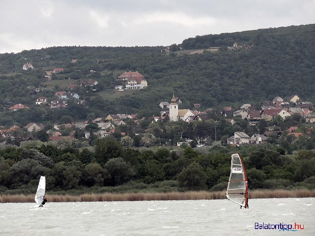 A balatonalmádi – vörösberényi – part szörfösökkel
