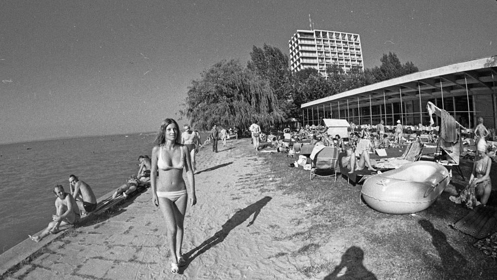 A siófoki szállodasor előtti part az 1966-ban utolsóként elkészült Hotel Európával és annak éttermével egy 1978-as képen – Fotó: Urbán Tamás – Fortepan.hu