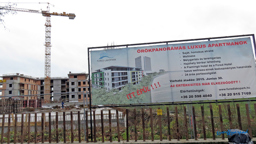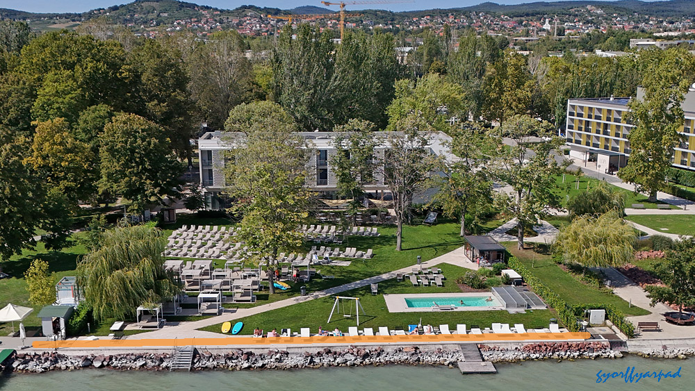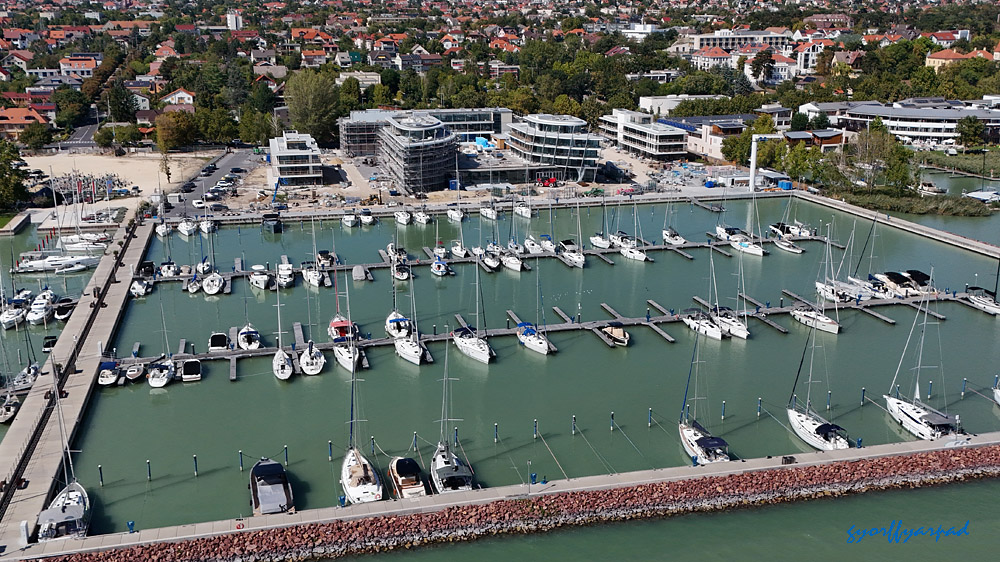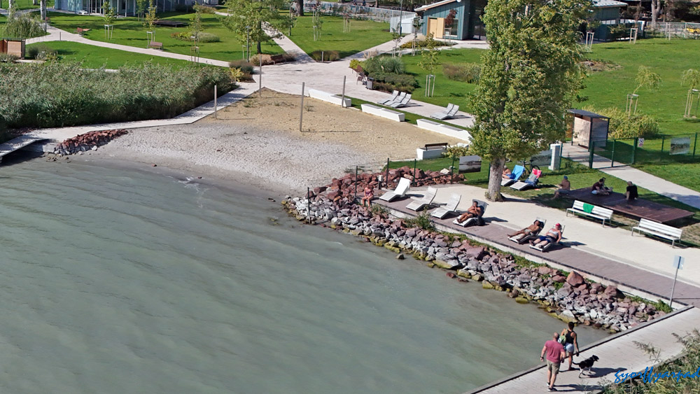 Ha tovább sétálnánk a hajóállomás felé, inkább menjünk ki a 71-es főút mellé, mert a partot elfoglaló szállodák előtt egy másfél kilométeres lezárt szakasz következik. Így itt normál halandó akkor tudja megközelíteni a Balatont, ha kibérel egy szobát valamelyik szállodában, vesz egy apartmant, vagy hajóhelyet bérel valamelyik kikötőben. A zártság alól egyedül a Silver udvarnál lévő, ma is nyitott 30 méteres partszakasz kivétel. És talán az lesz majd a Le Meridien Hotel 200 méteres partvonala, ahol az ígéretek szerint bárki kisétálhat majd a partra, ha elkészült a szálloda. Azért nézzük végig, miről is maradunk le, hisz a kormányrendelet szerint ezen a másfél kilométeren is bőven lenne lehetőségünk parti sétára.