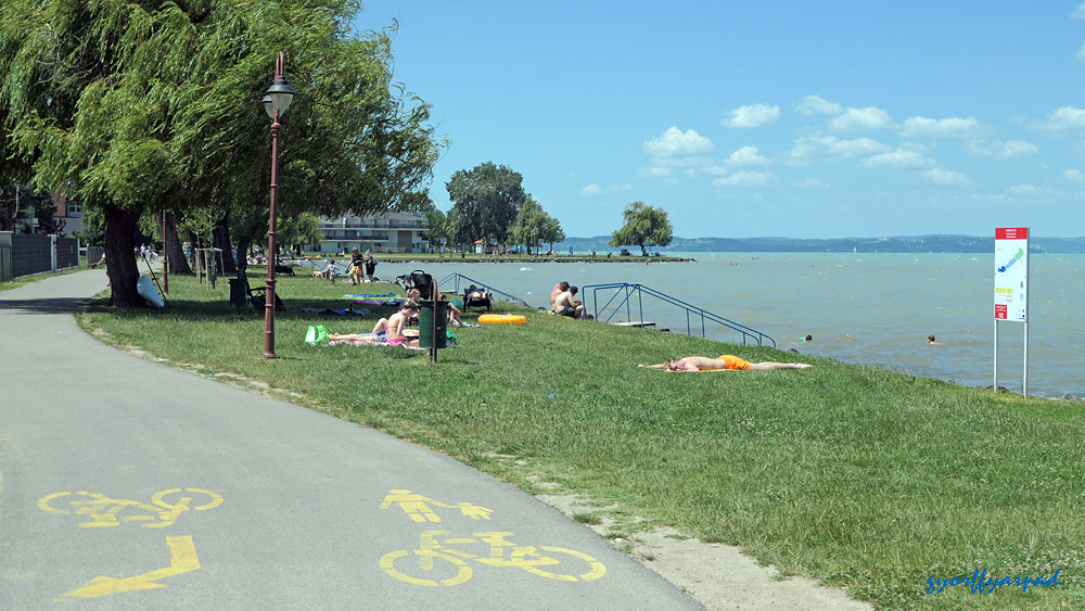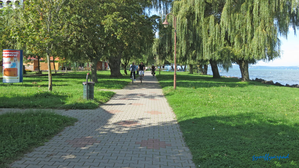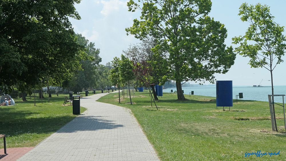 Az előző fotón is látható terület egyik részlete a földről. Az Ady sétány egyik, gyalogosoknak és kerékpárosoknak fenntartott szakasza a Balatonnal – Fotó: Győrffy Árpád