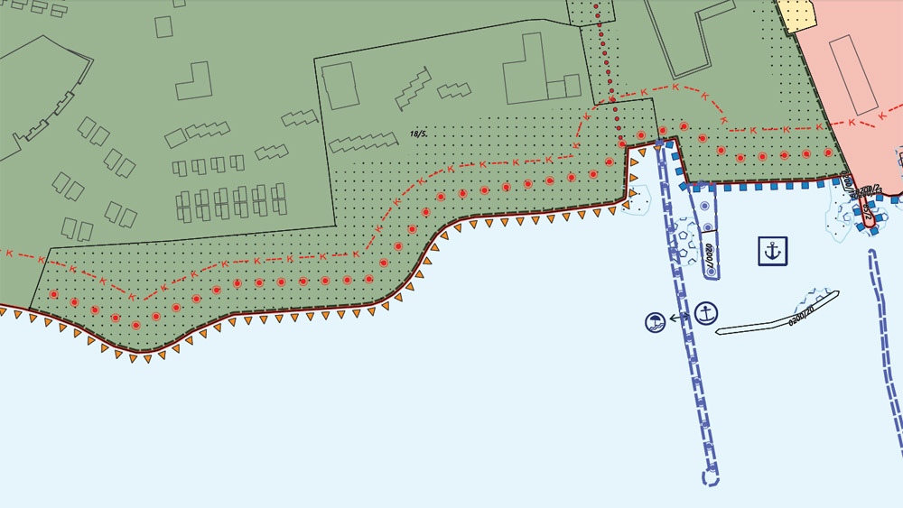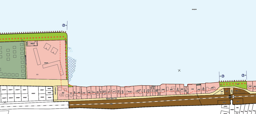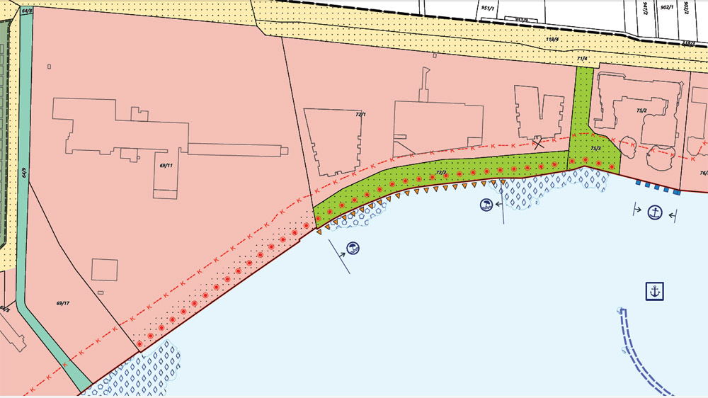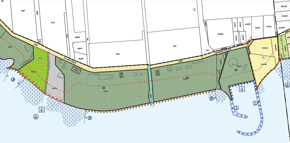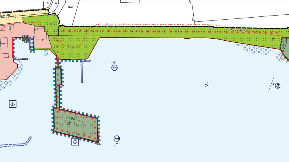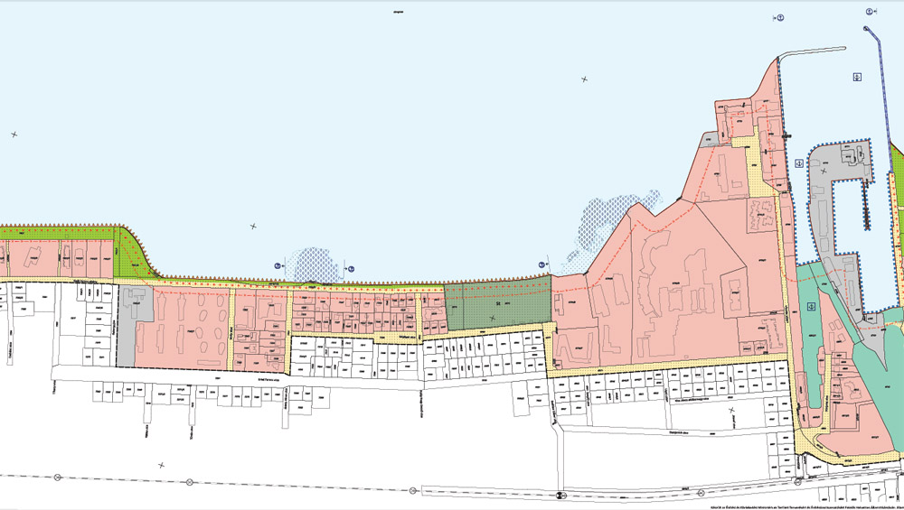A parti séta utolsó állomása a város keleti szélén, a Koloska kikötőben lehetne. Ahogy fent látható, a kormányrendelet térképes melléklete szerint mindkét mólót “sétány közhasznú mólón” jelzéssel láttak el.