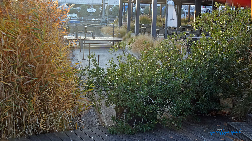 A Kékszalag Port parti területén 130 méter hosszú sétányt találunk, amihez csatlakozik a 190 méter hosszú móló. Az előző fotón zöld színnel jelzett sétányokat szabadon bejárhatjuk.