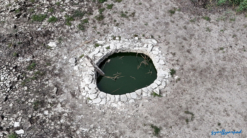 Egy kútszerű kikövezett lyuk a kiszáradt mederrészben. Bizonyára valamikor hasonló vízállásnál készülhetett – Fotó: Győrffy Árpád