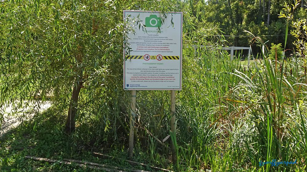 “FÉNYKÉPEZÉSI PONT! – Tisztelt Látogató! Ezen a helyen állva készíthetők látványos fotók. A tiszta vízben visszatükröződő hegyoldal látványa idilli hatású