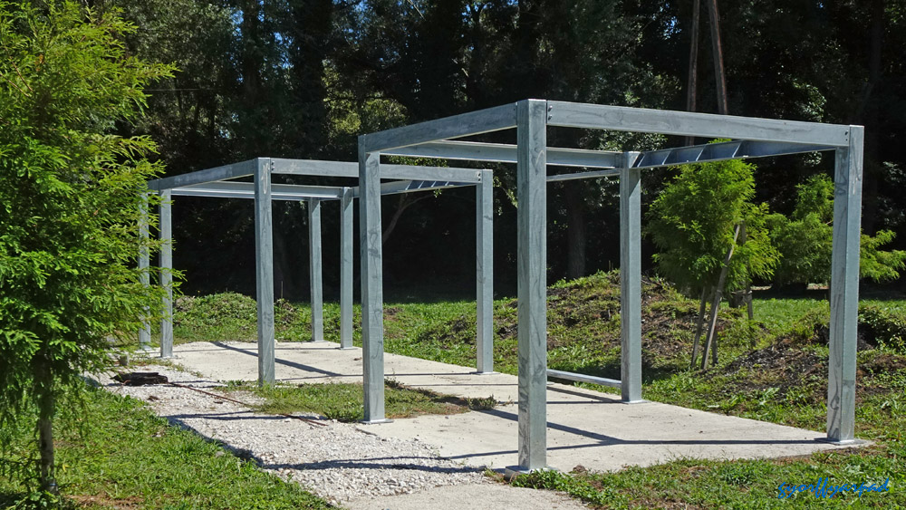 Az interaktív bemutató eszközök tartóelemei – az ismertető szerint mindegyik tetejét lappal fedik, és egy illetve kettő függőleges lapot tartanak majd rajzokkal, információkkal – Fotó: Győrffy Árpád